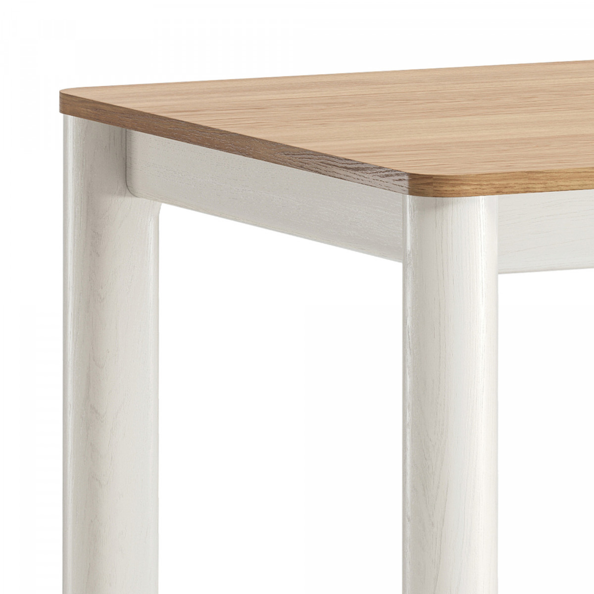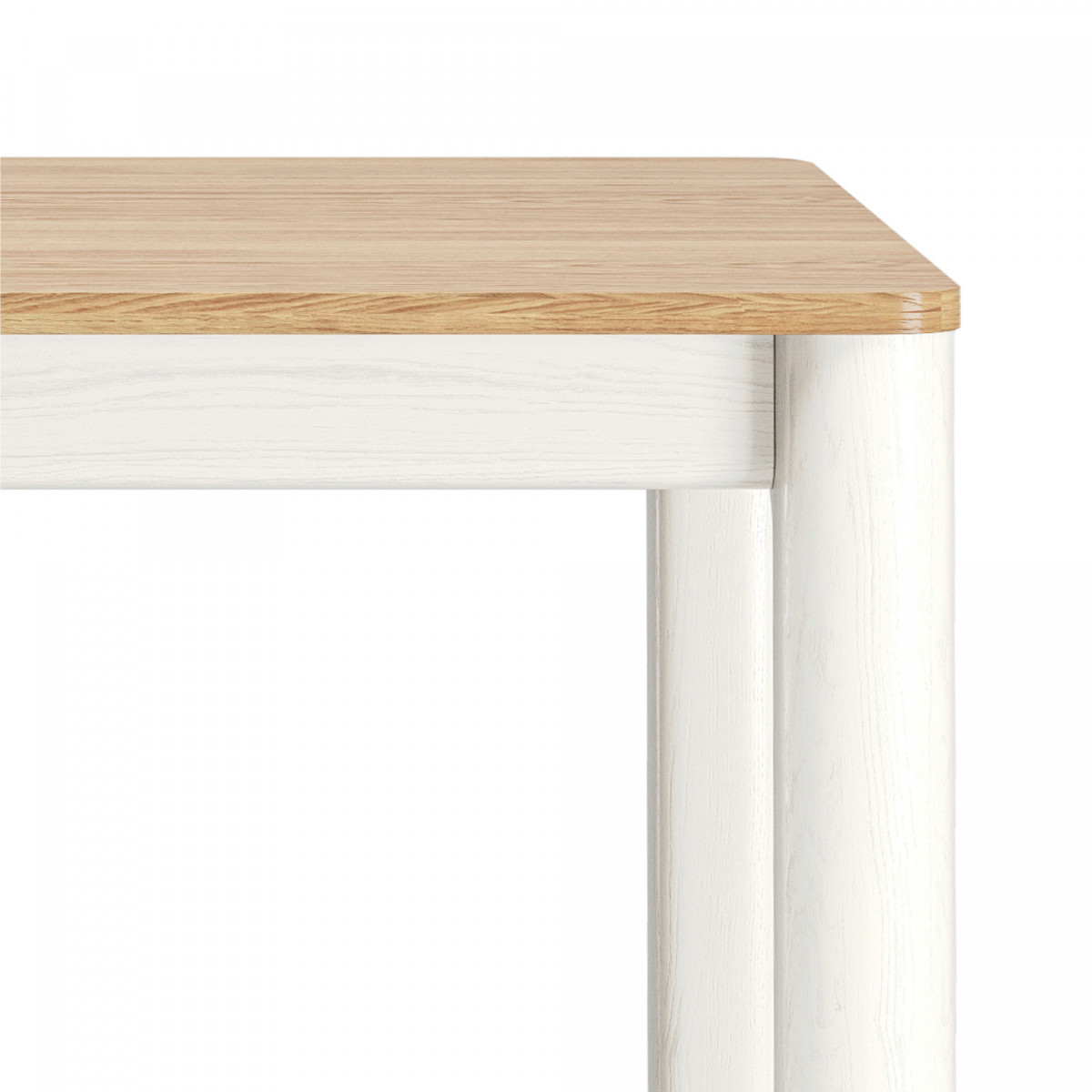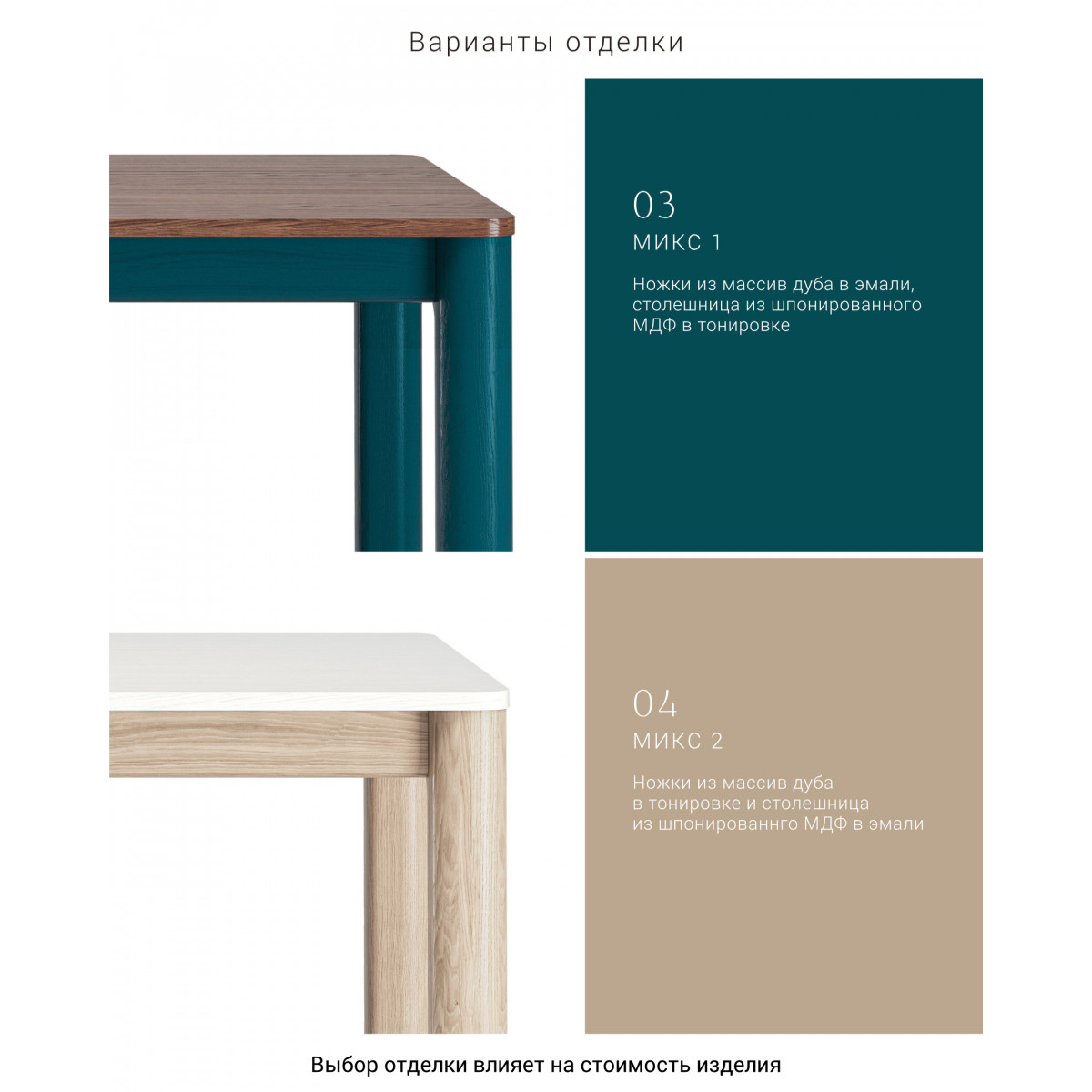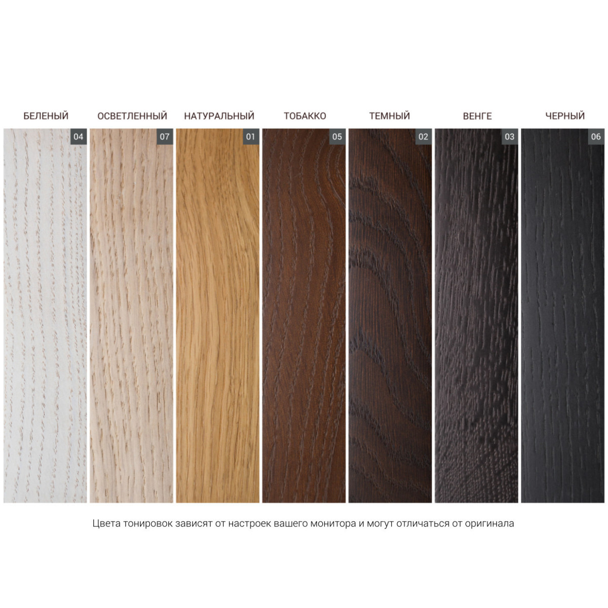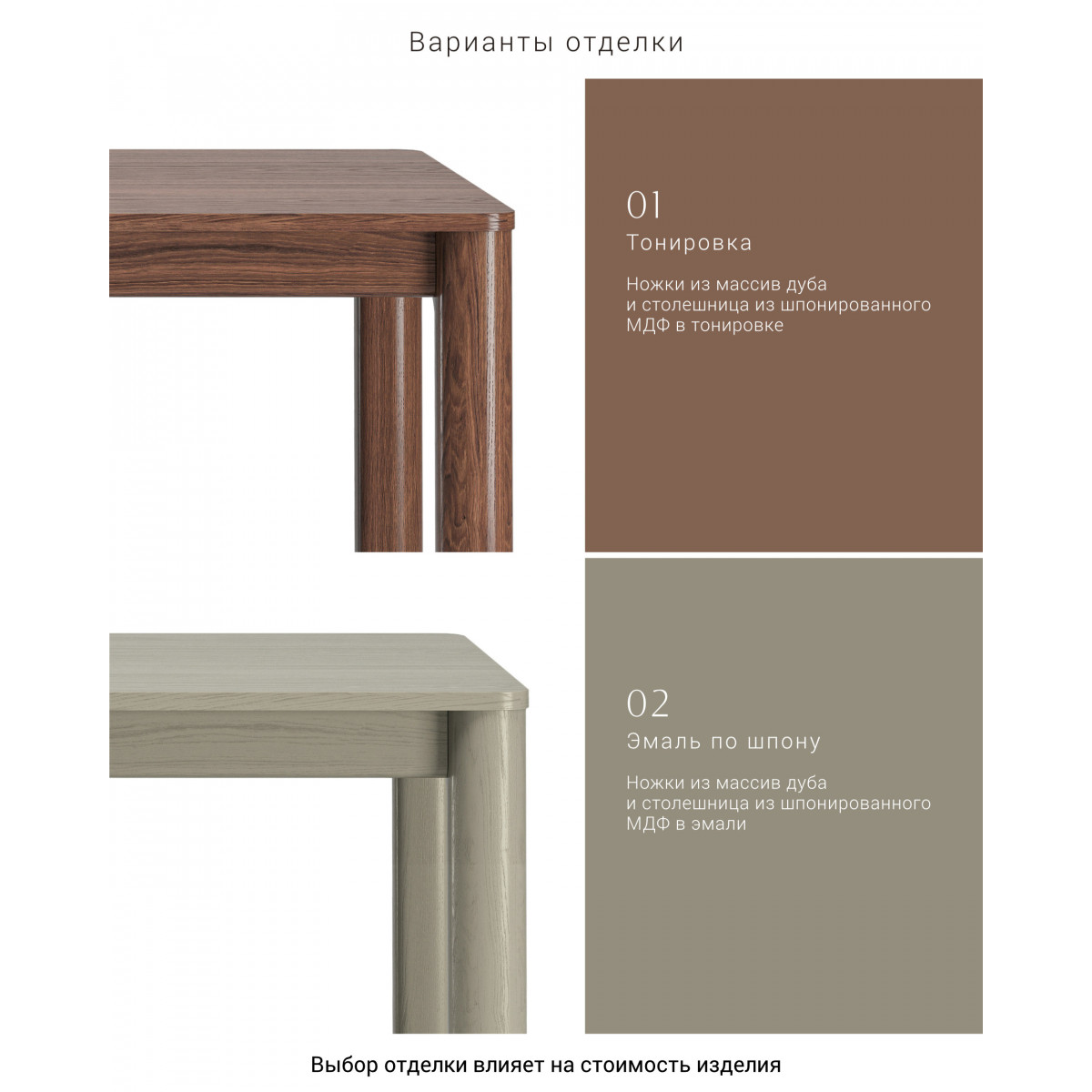 Столешница со скругленными краями выполнена из МДФ в шпоне дуба. Доступна в 7 видах тонировки или 30 цветах эмали, нанесенной поверх текстуры дерева;